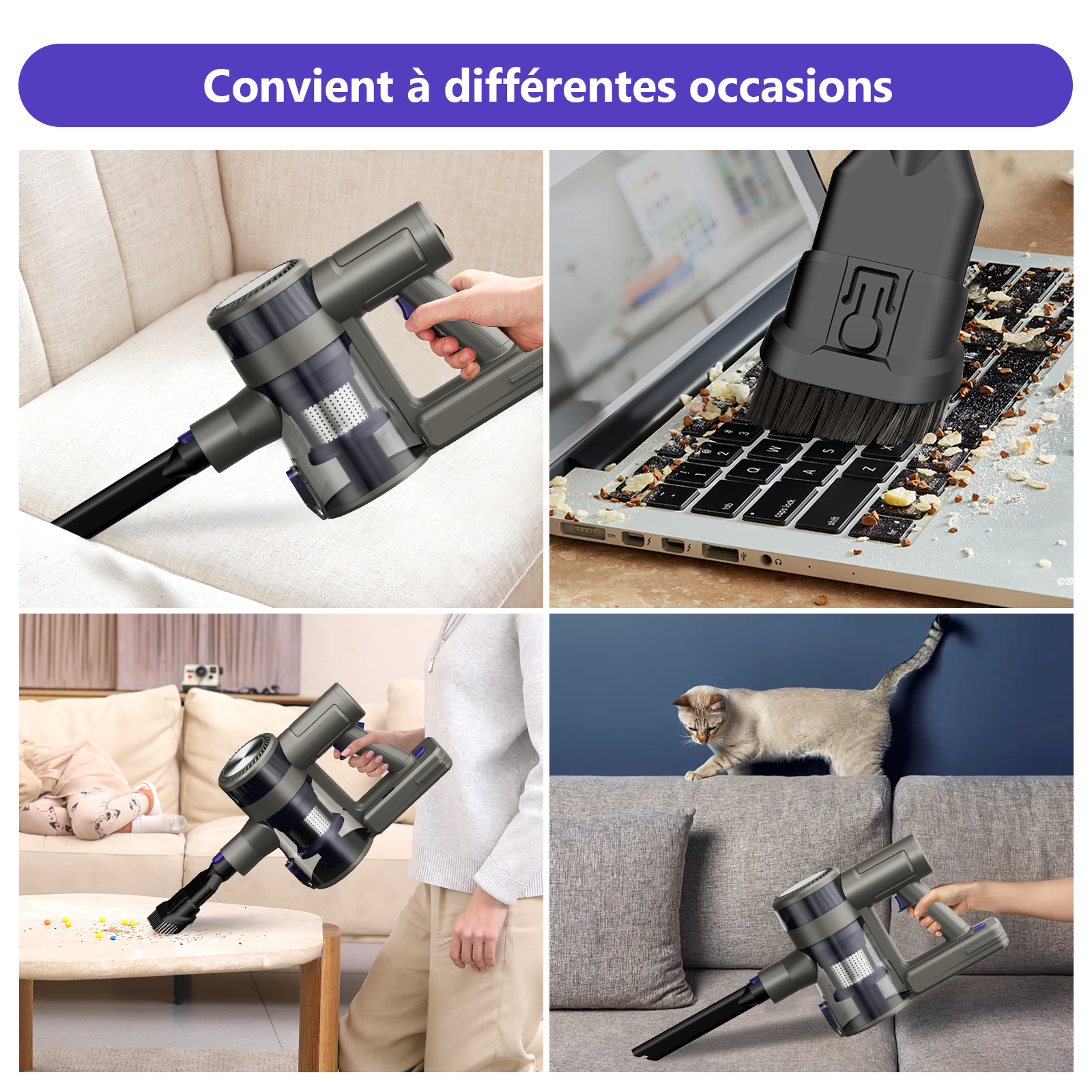 | Répondre à tous vos besoins de nettoyage Cet Aspirateur peut être assemblé en multi combinaisons et vous aidera à nettoyer tous les coins de votre maison, tels que le canapé, la table basse, le rebord de la fenêtre, les rideaux, le clavier, la voiture, etc. | ![]() |