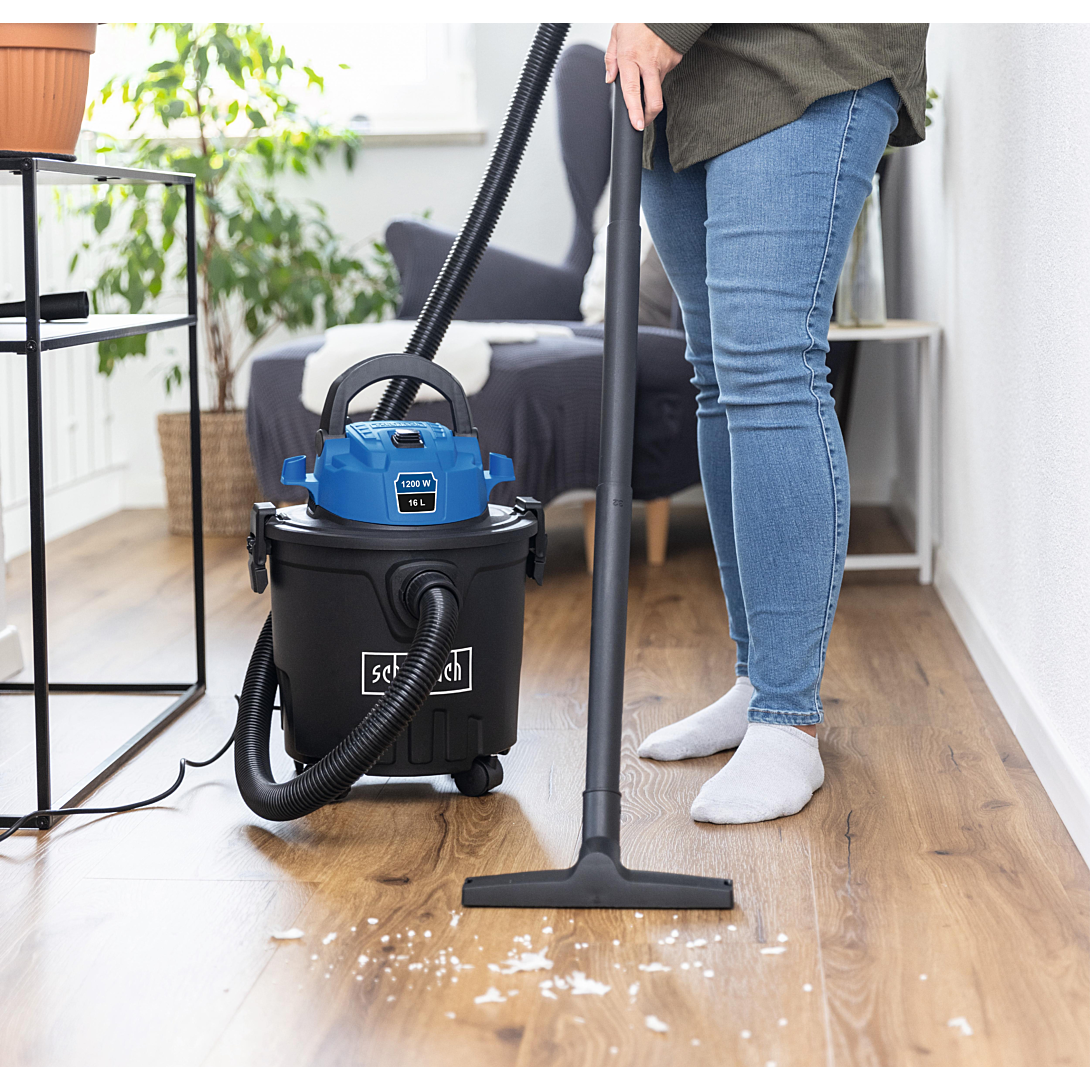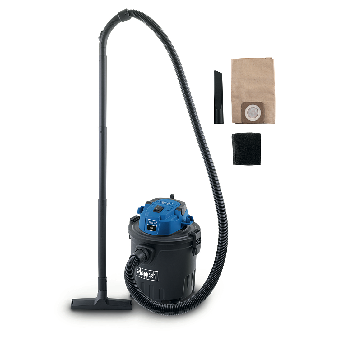 Que ce soit à la maison ou sur le chantier, l'aspirateur électrique eau et poussière VC16 de Scheppach débarrasse de manière fiable les sols de toutes sortes de poussières, saletés ou liquides. Grâce à la fonction pratique de soufflage, il permet de nettoyer sans peine les endroits même difficiles d'accès. Les quatre roulettes 360° et la poignée de transport pratique permettent un transport aisé. Le bac de récupération robuste et incassable a une capacité de 16 litres et est équipé de fermetures rapides pour un vidage facile. Le VC16 est livré avec un tuyau d'aspiration de 1,8 m, 3 rallonges de 33 cm en plastique, un sac en papier (certifié FSC), un filtre en mousse, un suceur pour fentes et un suceur pour sols.