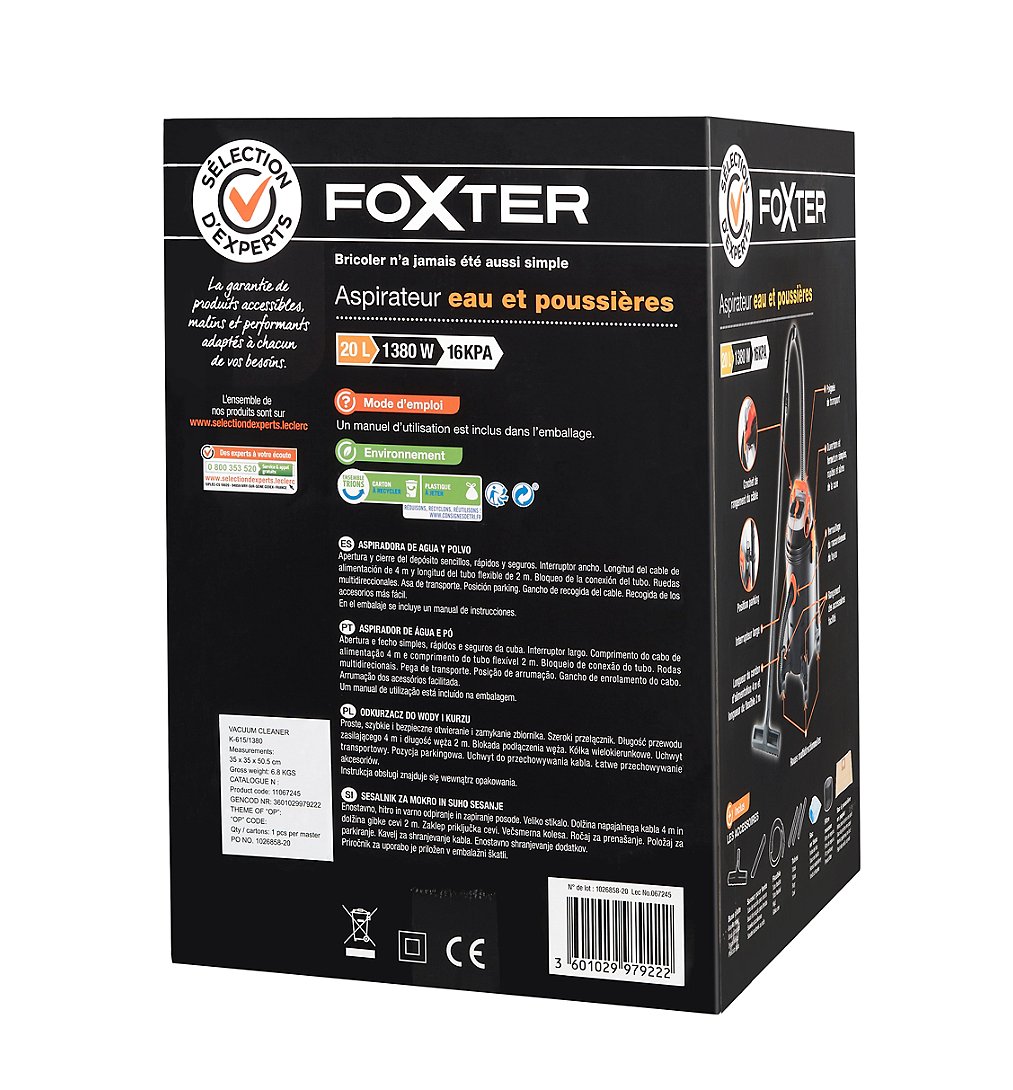 Libellé Aspirateur eau et poussière 20L 1380W 16KPA Séléction d'Experts - Foxter
