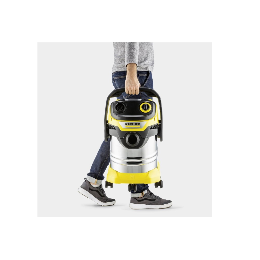 Avec le WD 5 S V-30/5/22 et son filtre plissé plat, bénéficiez d'une puissance de nettoyage optimale pour l'aspiration simultanée de poussière, gravats et liquides. Kärcher WD 5 S V-25/5/22. Type de nettoyage: Sec&humide, Couleur du produit: Acier inoxydable, Noir, Jaune, Matériaux du filtre: Toison. Capacité: 25 L, Longueur de câble: 5 m, Longueur du tuyau: 2,2 m. Source d'alimentation: Secteur, Puissance d'entrée: 1100 W, Tension d'entrée AC: 220-240 V. Largeur: 382 mm, Profondeur: 418 mm, Hauteur: 646 mm.