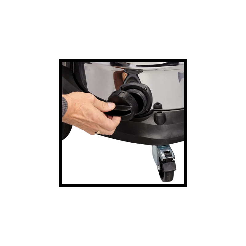 > 1 mg/m³, et est ainsi particulièrement adapté aux personnes souffrant d’allergies. Le système de nettoyage du filtre permet de rétablir la puissance d’aspiration. La cuve en inox anti-corrosion robuste, d’une capacité de 50 litres, est équipée d’un bouchon de purge pour les liquides. L’aspirateur eaux et poussières est équipé d’un raccord de soufflage, d’une prise de courant asservie, de grandes roues et roulettes, d’un système d’enroulement du câble au niveau de la poignée trolley et d’un support pour accessoires. Il est vendu avec un tube télescopique en inox à régulateur d’air, un flexible d’aspiration en plastique haute résistance de 3 m, une grande buse combinée, une buse pour rainures et une buse pour tissus d’ameublement, ainsi qu’un filtre à plis HEPA, un filtre en mousse, un sac filtrant et un sac non tissé.