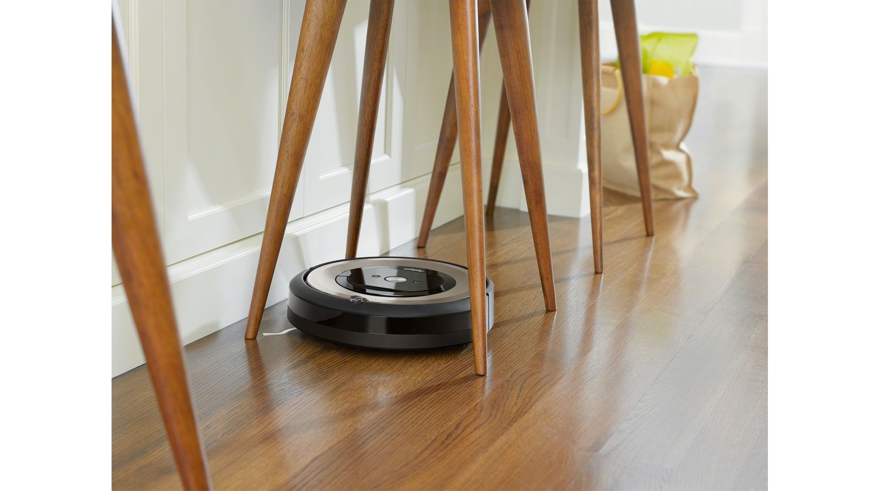 Le Roomba e6198 a été conçu pour un design avec une hauteur de 9,14 cm seulement, l'aspirateur robot est donc capable de nettoyer sous les meubles et d'autres zones difficiles d'accès.