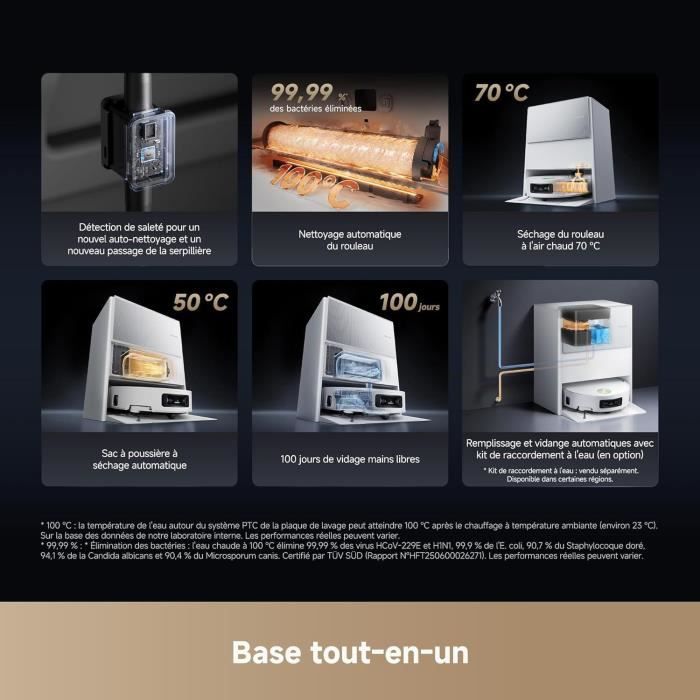 Le robot est vraiment excellent mais malheureusement fuit lors du lavage de son rouleau sur la base, l'eau s'infiltre et s'accumule sous la base. robot parti en sav après seulement 1 semaine, j'attends un échange contre un autre neuf en espérant qu'il ne fuira pas !