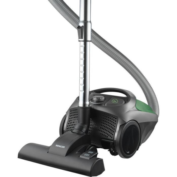 L'aspirateur SENCOR SVC 1016GR sans sac offre une puissance de 800 W pour un nettoyage efficace des sols durs. Avec un systeme de filtration Cyclone et des filtres EPA E12, il capture poussieres et allergenes. Léger et ergonomique, il dispose d'un bac a poussiere lavable de 1,5 L et d'accessoires variés pour un nettoyage complet.