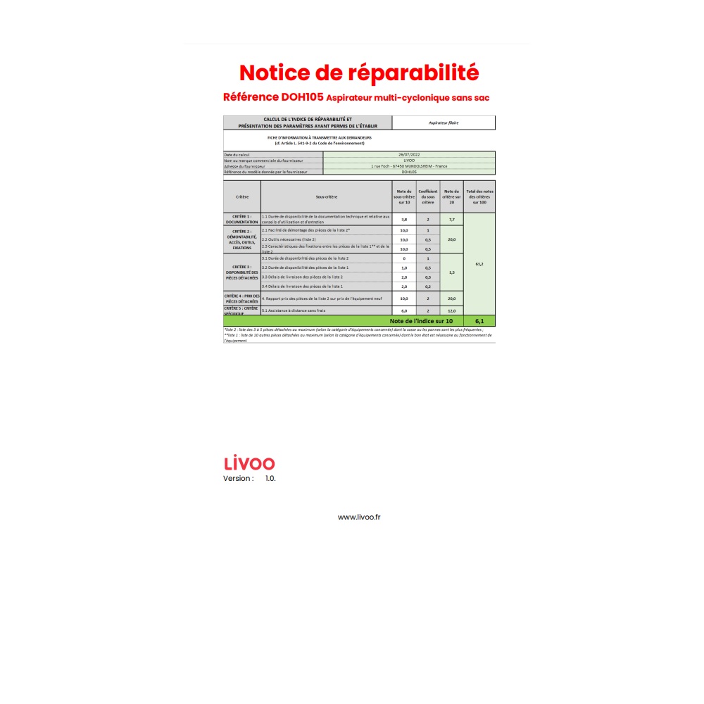 doh105b - aspirateur sans sac 80db bleu - L'aspirateur multi-cyclonique sans sac Livoo DOH105B est doté d'un filtre à poussière permanent lavable avec système de filtration multi-cyclonique. Interrupteur marche/arrêt au pied. Tube flexible avec contrôle de débit d?air à la poignée. Enrouleur automatique et poignée de transport. Position parking verticale et horizontale intégrée. Embout 2 en 1 brosse/suceur plat inclus.