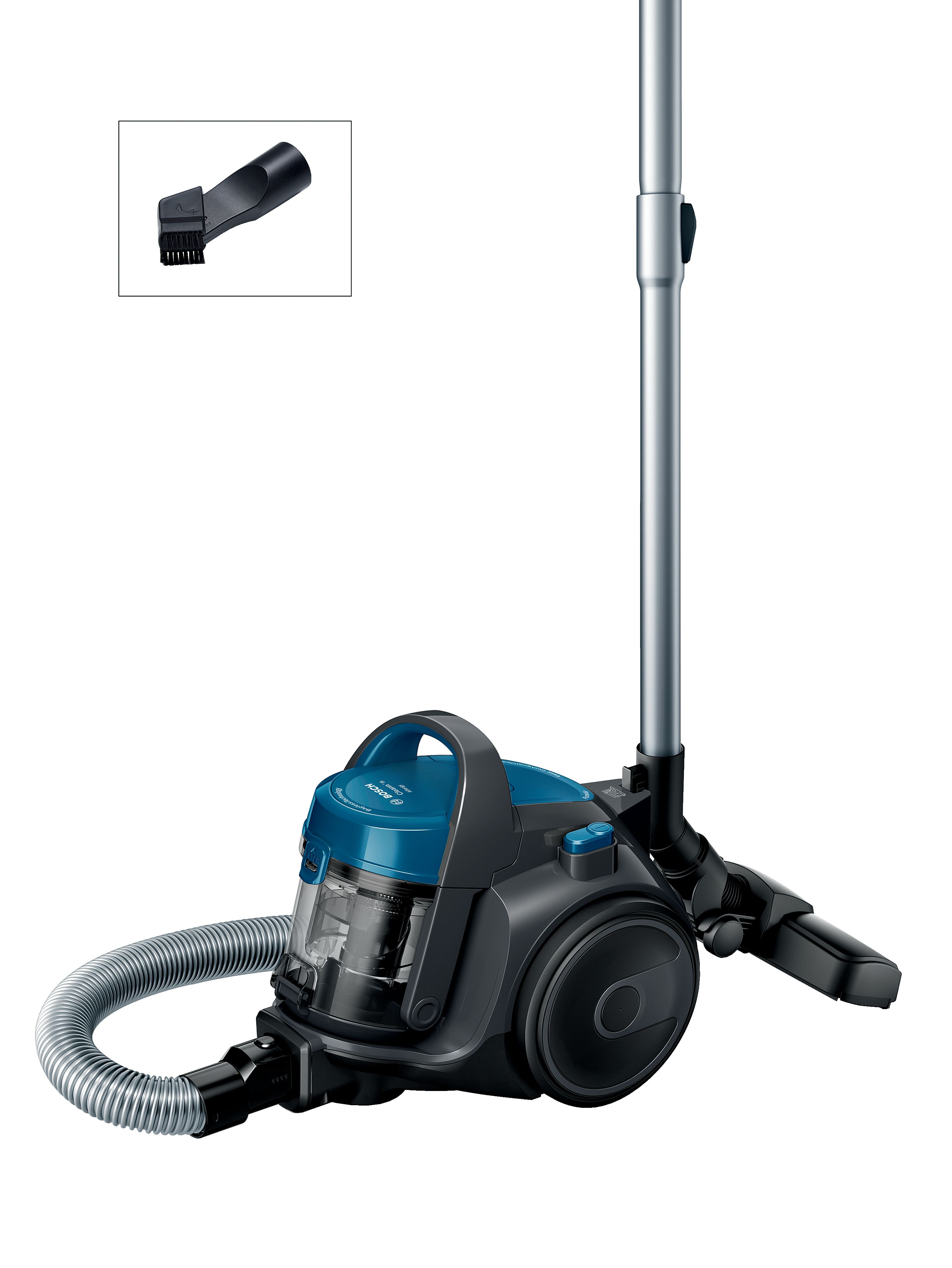 GS05 Cleann'n - aspirateur sans sac - bleu - 78 dB - 28 kWh/an - (h)epa - 9m - 1,5L - tube télescopique à crémaillère - brosse universelle - acc. 2en1 - Vidage facile et hygiénique du bac - Position parking et rangement - Enrouleur automatique de cordon