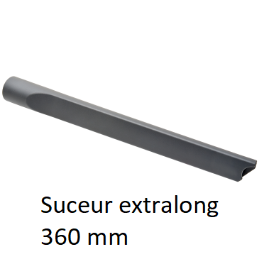 | Accessoires inclus | turbo brosse; suceur extra long 360mm ; suceur fauteuil extra large 180mm; tube télescopique en acier inoxydable. |