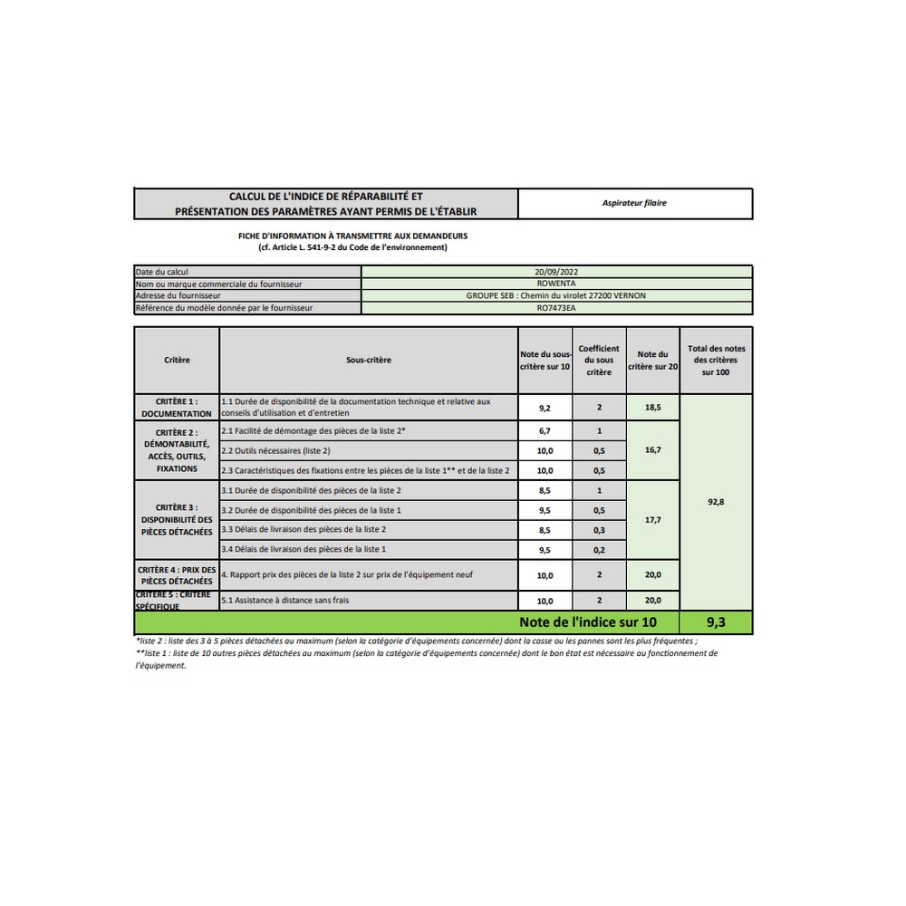 Indice de réparabilité 9,3 / 10