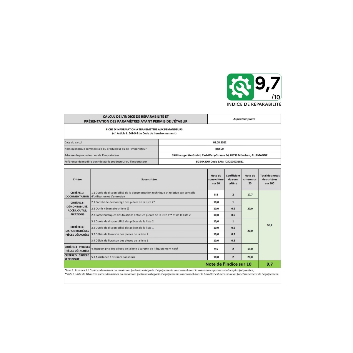 Moteur garanti 10 ans, conçu et développé par Bosch en Allemagne pour une haute performance d'aspiration.