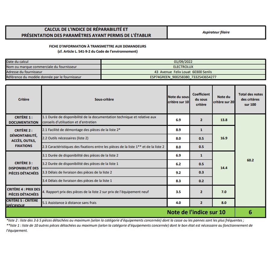 | Le produit est-il soumis à l'indice de réparabilité ? | Non |