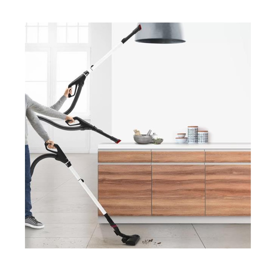[Cet avis a été recueilli en réponse à une offre.] Aspirateur silencieux et performant mais au bout de quelques semaines la bague de fixation de la brosse sol moquette/sol dur est défectueuse avec un jeu qui fait que la brosse ne tient plus sur le tube télescopique. Qualité des accessoires à revoir
