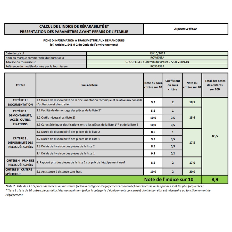 | Le produit est-il soumis à l'indice de réparabilité ? | Non |