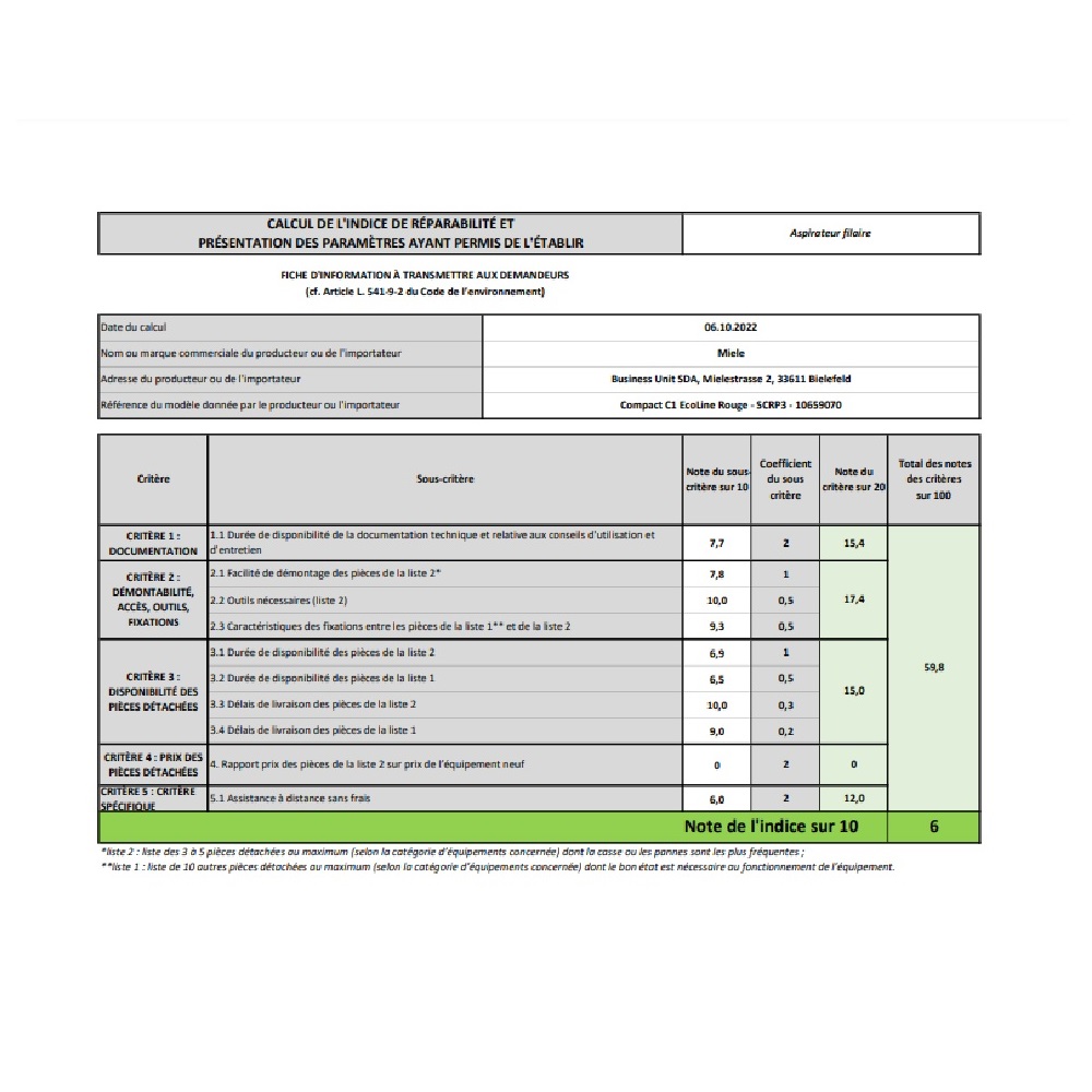 Indice de réparabilité 6 / 10