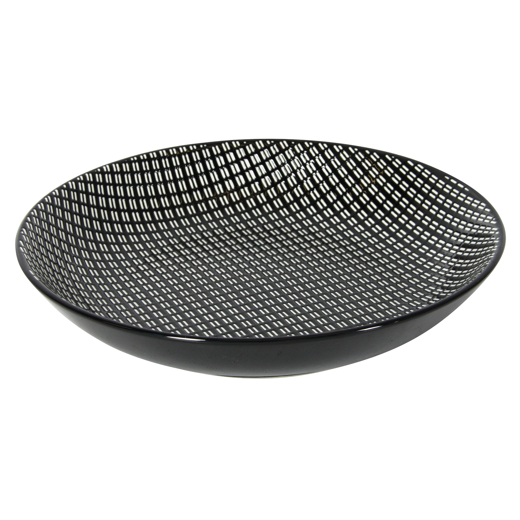 Assiette creuse Grès Forme ronde Ø 21 cm H 4 cm Coloris Blanc-noir brillant