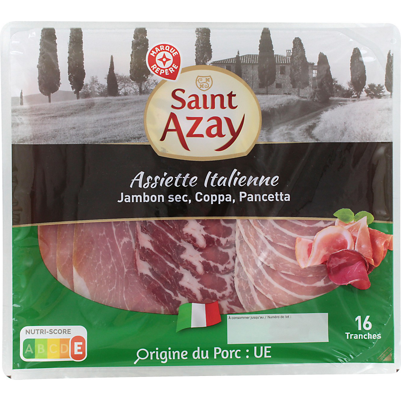 Assortiment de charcuteries tranchées : Jambon sec, coppa, pancetta SAINT-AZAY