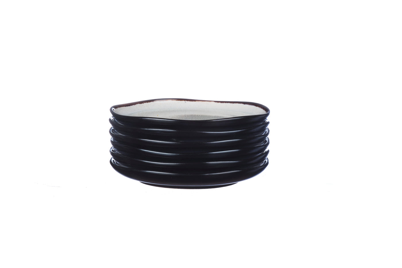 Cette petite assiette à la forme contemporaine avec des rebords arrondis est souvent appelée assiette à pain, idéale pour présenter une pâtisserie ou un accompagnement, ou encore être utilisée comme une sous-tasse. Sa couleur noire à l'extérieur apporte une touche élégante et raffinée à votre table tandis que les émaux réactifs à l'intérieur lui confèrent un relief profond et unique.