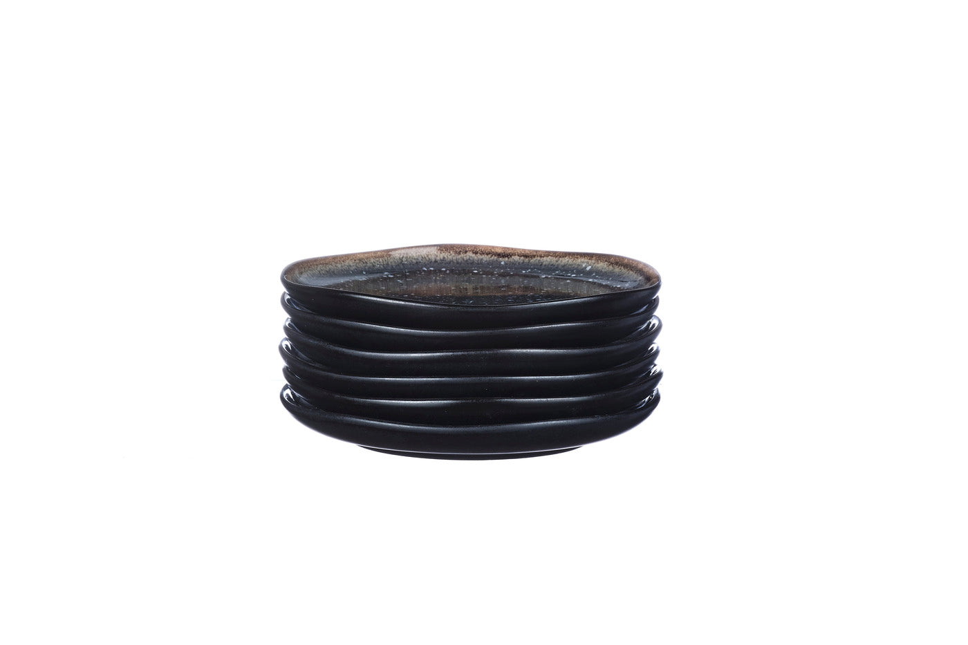 Cette petite assiette à la forme contemporaine avec des rebords arrondis est souvent appelée assiette à pain, idéale pour présenter une pâtisserie ou un accompagnement, ou encore être utilisée comme une sous-tasse.