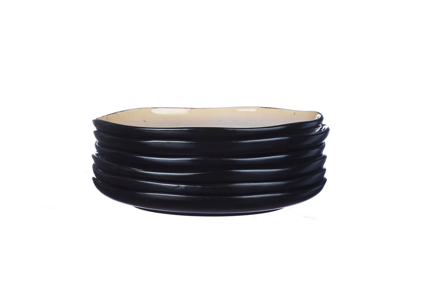 Cette petite assiette à la forme contemporaine avec des rebords arrondis s'adapte à tous vos mets de l'entrée au dessert. Sa couleur noire à l'extérieur apporte une touche élégante et raffinée à votre table tandis que les émaux réactifs à l'intérieur lui confèrent un relief profond et unique.