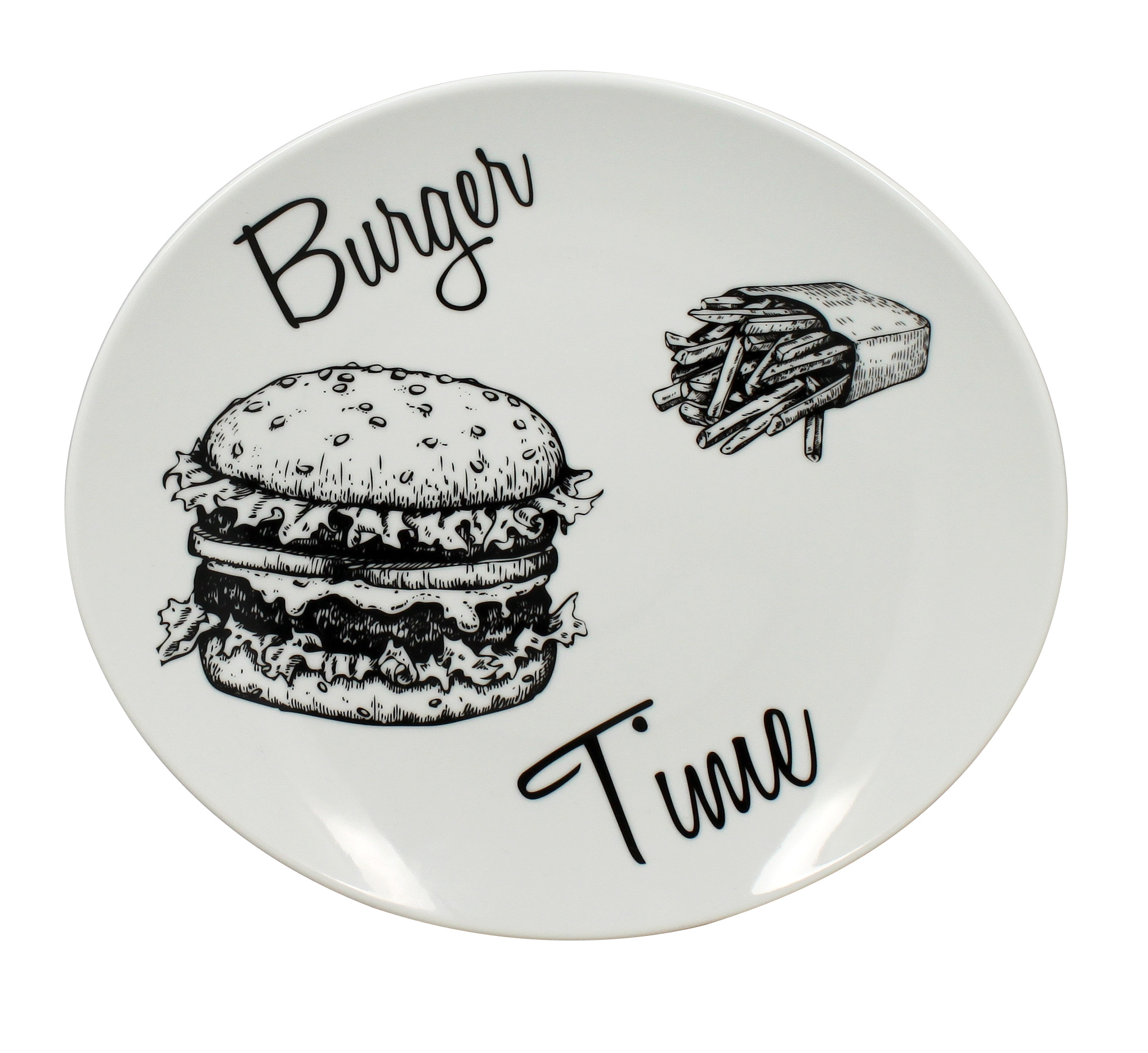 Présentez vos burgers "maison" dans cette assiette en porcelaine au décor sympa et convivial. En noir et blanc