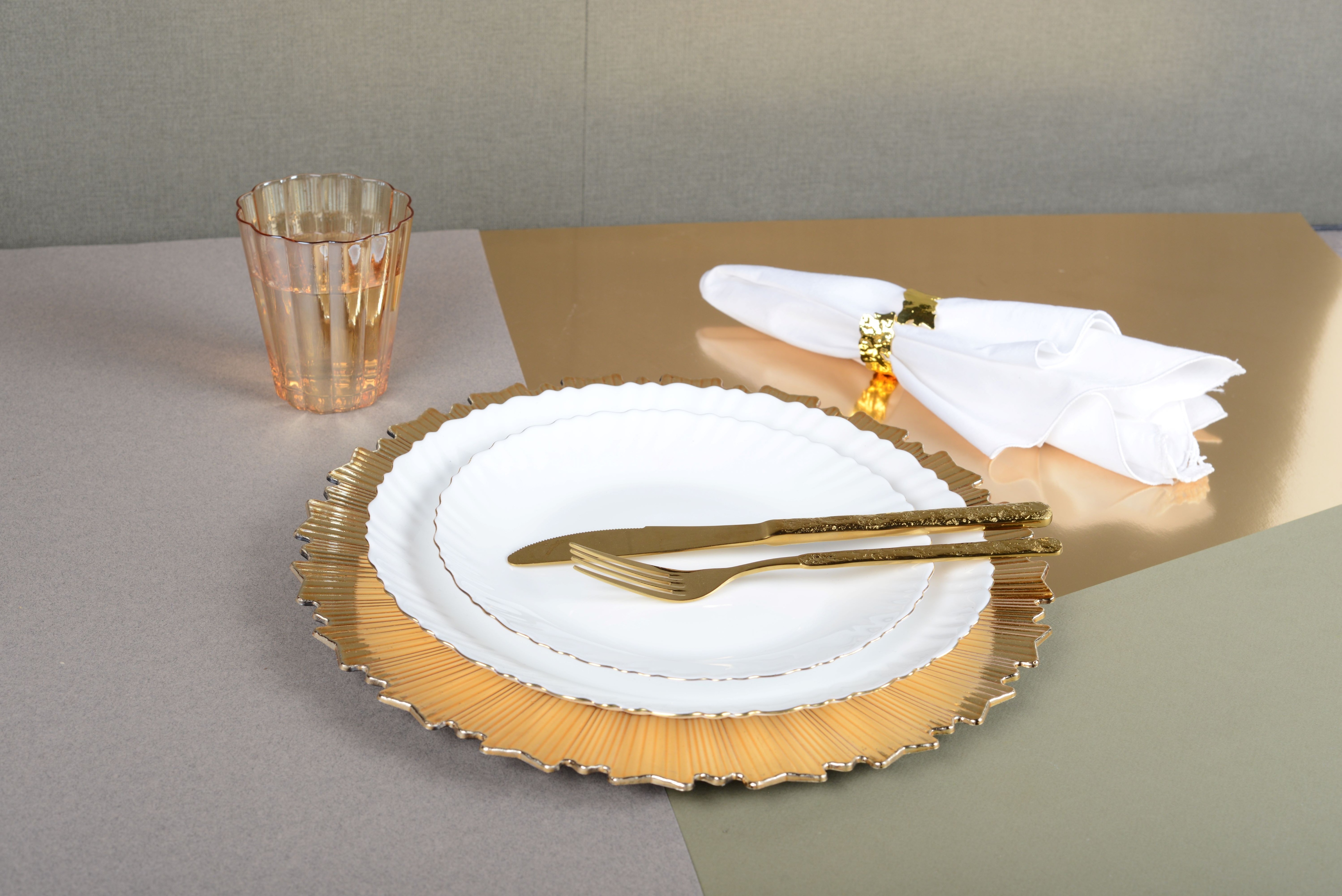 Libellé Assiette plate blanche bord doré - Lot de 6