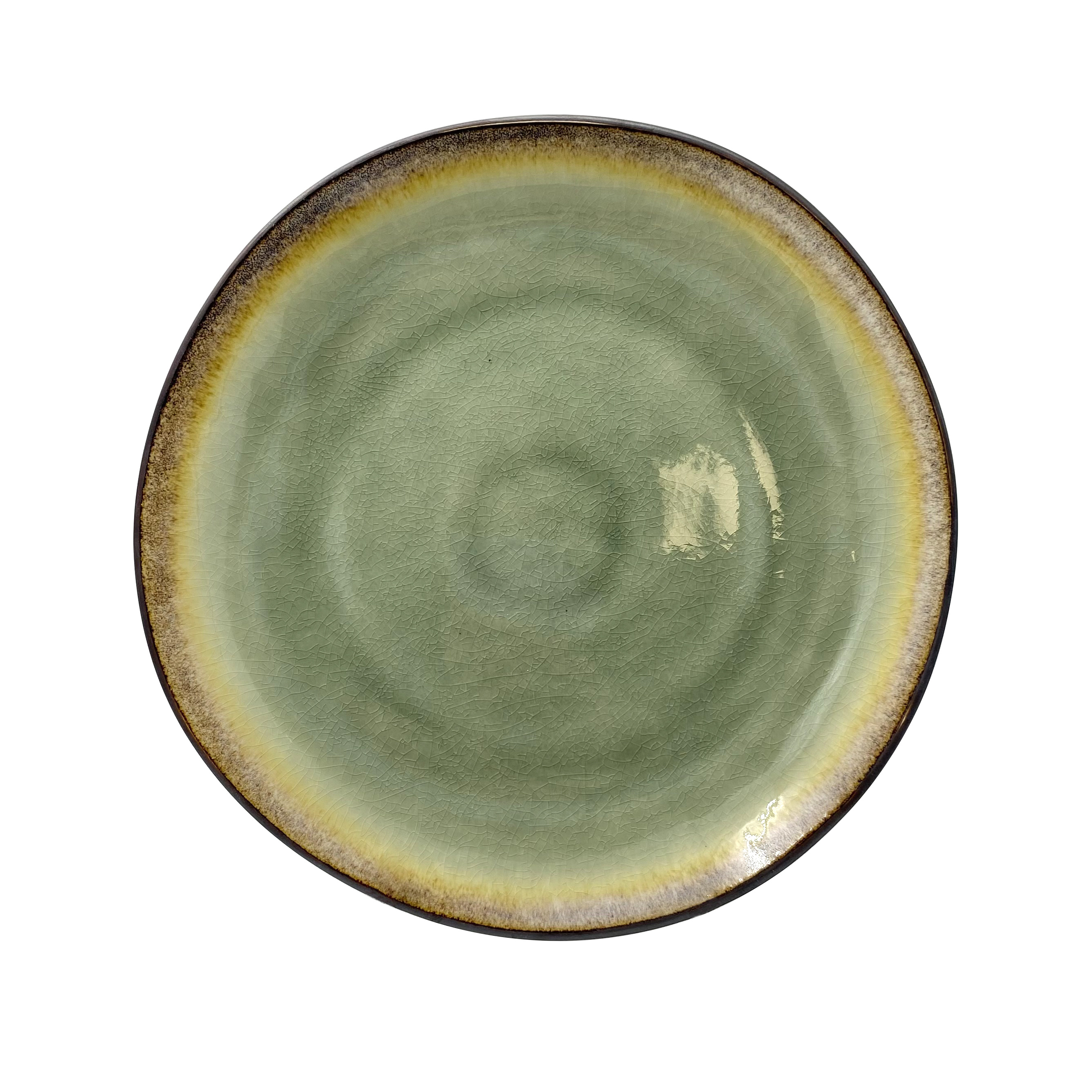 Assiette plate en grès sauge D27.5CM émail réactif avec effet craquelé