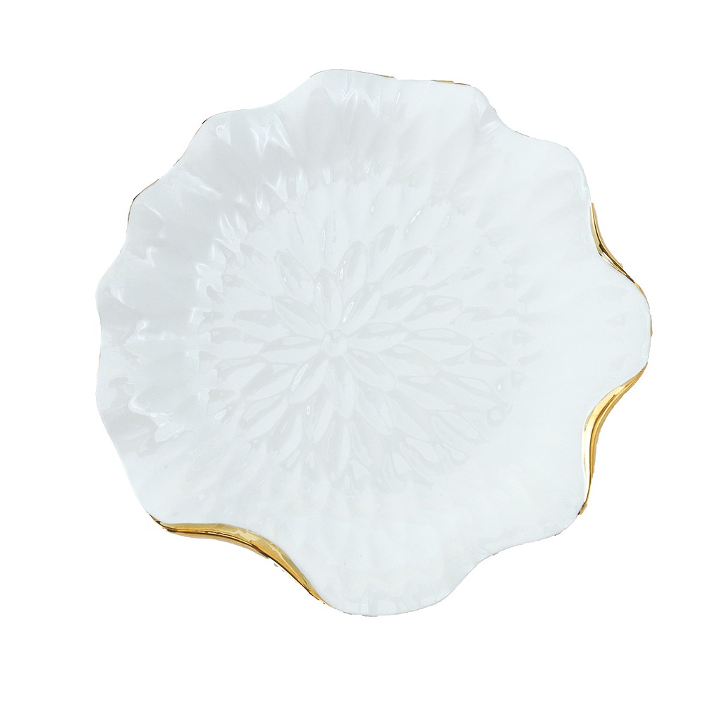 180801 - Assiette plate en porcelaine blanche avec bords dorés - AULICA