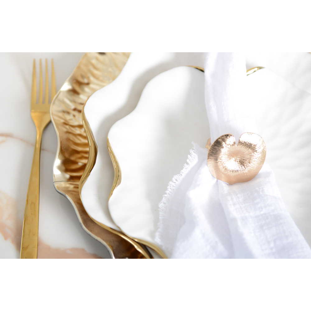 Assiette plate en porcelaine blanche avec bords dorés - Lot de 6