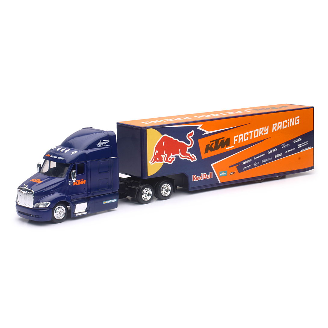 Retrouvez les répliques de l'un des camions qui suivent les championnats GP ou moto-cross ! 4 modèles assortis à l'échelle 1/43°- Team Honda Repsol /Team Bud Racing Kawasaki/ Team KTM Red Bull/Team Ducati GP;