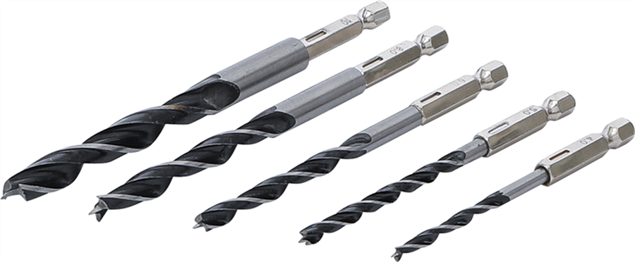 Lot de 5 mèches à bois 6 pans 1/4 spéciales pour visseuses :