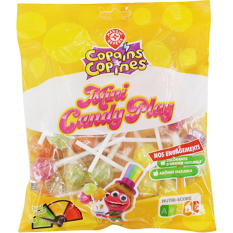 Assortiment de mini sucettes aromatisées goûts citron, orange, fraise, pomme, groseille COPAINS COPINES