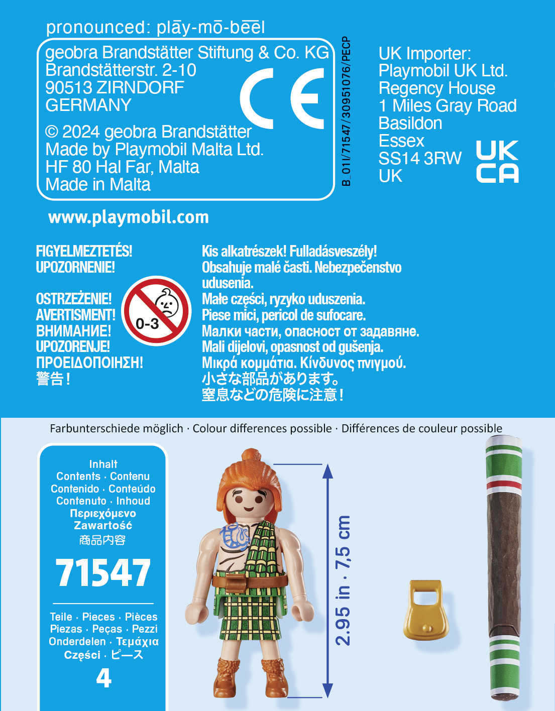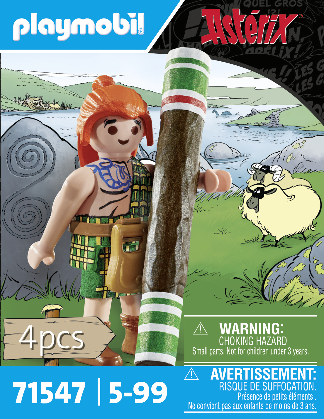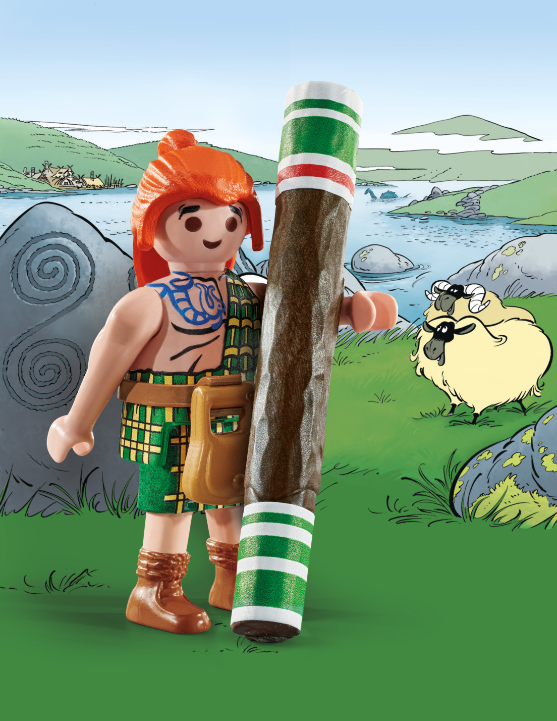 Voyagez aux côtés d'Astérix et Obélix jusqu'en Ecosse et faites la rencontre du courageux Picte, Mac Oloch. Dans la bande dessinée "Astérix chez les Pictes", nos intrépides Gaulois rencontrent Mac Oloch et l'aident à regagner sa terre écossaise. Au cours de leur périple, ils croisent la route de personnages fascinants aux coutumes originales, comme le lancer de tronc d'arbre. Élargissez votre collection d'Astérix avec ce superbe coffret : Mac Oloch. PLAYMOBIL vous propose un personnage très réaliste et ressemblant aux personnages de la série.