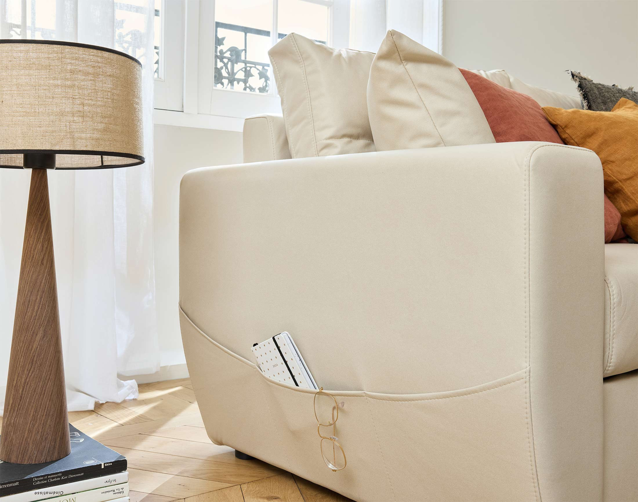 Profondeur d'assise canapé sans coussins : 68 cm