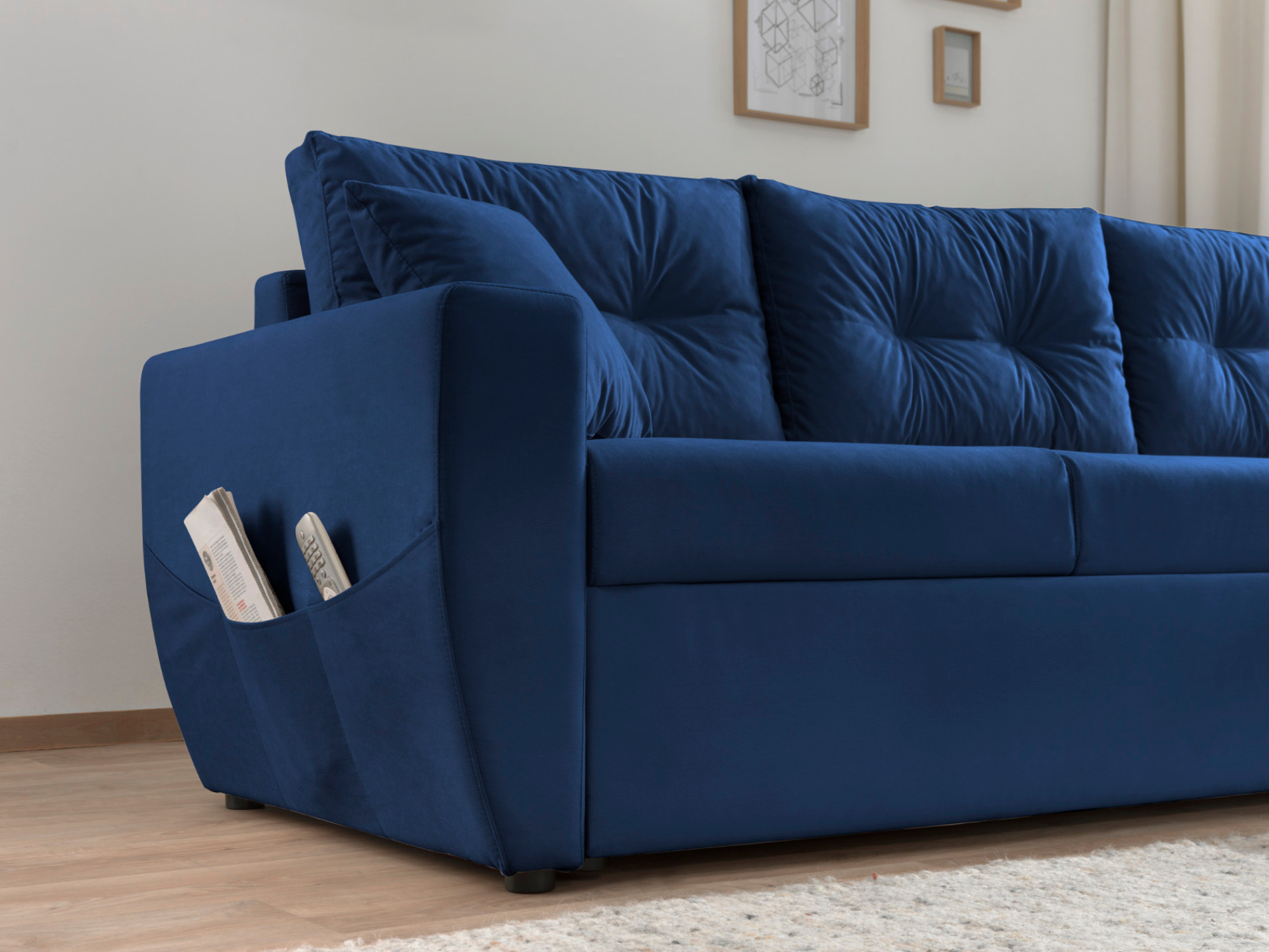 Le canapé d’angle Astoria possède une poche sur l’accoudoir afin d’y ranger télécommandes et magazines. Une fonction convertible est aussi disponible en dépliant le tiroir se trouvant sous l’assise, pratique pour accueillir vos proches occasionnellement. Vous trouverez aussi un coffre de rangement sous la méridienne, pratique pour y glisser plaids, coussins. A droite ou à gauche, choisissez la position de l’angle grâce à sa fonction réversible.