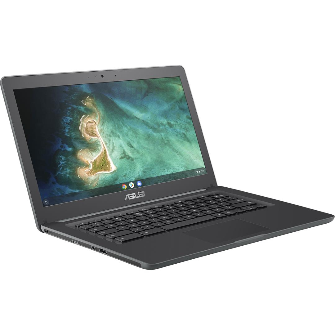 ASUS Chromebook C403NA-FQ0005. Type de produit: Chromebook, Format: Clapet. Famille de processeur: Intel® Celeron®, Modèle de processeur: N3350, Fréquence du processeur: 1,1 GHz. Taille de l'écran: 35,6 cm (14"), Type HD: HD, Résolution de l'écran: 1366 x 768 pixels. Mémoire interne: 4 Go, Type de mémoire interne: LPDDR4-SDRAM. Capacité totale de stockage: 32 Go, Supports de stockage: eMMC. Modèle d'adaptateur graphique inclus: Intel® HD Graphics 500. Système d'exploitation installé: ChromeOS. Couleur du produit: Gris