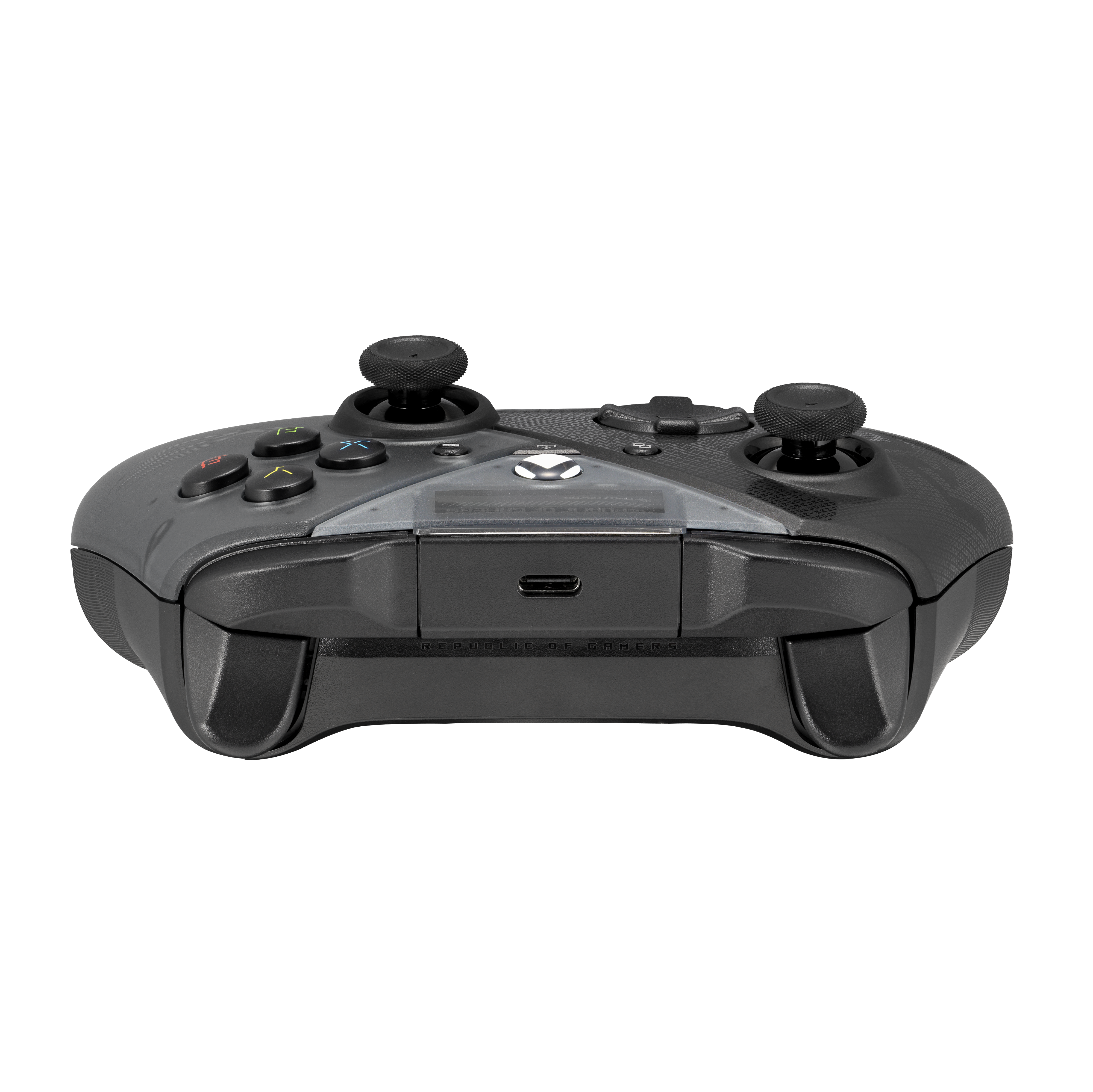 Manette très agréable à prendre en main. Un long câble de 3m est fourni (et blindé). Les gâchettes ont deux modes : "classique" et "court", le mode "classique" c'est ce qu'on retrouve dans les manettes traditionnelles et le mode "court" permet de réduire de moitié la course de la gâchette afin de l'activer plus tôt (donc plus réactif). Les deux gâchettes ont un bouton situé à l'arrière qui permet de les passer d'un mode à l'autre, indépendamment. Petit problème je trouve, l'emplacement de ces boutons n'est pas forcément intuitif si on veut switcher rapidement (il aurait fallu les décaler un peu je pense). L'eclairage led est classe mais pas indispensable, on peut le modifier via le logiciel d'Asus Armoury Crate. Le gros point négatif que je lui trouve c'est que pour ce prix il n'y a pas de batterie ! Seulement branchement filaire. Sinon très bon produit tout de même.