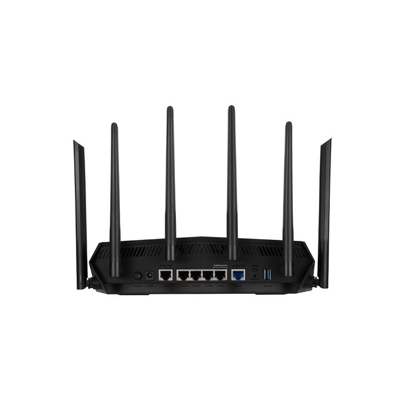 ASUS TUF Gaming AX6000 (TUF-AX6000). Type de connexion WAN: RJ-45. Bande Wi-Fi: Bi-bande (2,4 GHz / 5 GHz), Norme Wi-Fi: Wi-Fi 6 (802.11ax), Débit de transfert des données WLAN (max): 4804 Mbit/s. Type d'interface LAN Ethernet: Gigabit Ethernet, LAN Ethernet : taux de transfert des données: 10,100,1000,2500 Mbit/s, Technologie de cablâge: 10/100/1000Base-T(X). Algorithme de sécurité soutenu: WPA, WPA2, WPA3, Répertoire MAC: 64 entrées, Fonction NAT: PPTP Pass-Through, L2TP Pass-Through, IPSec Pass-Through, RTSP Pass-Through, H.323 Pass-Through,.... Protocoles réseau pris en charge: IPv4, IPv6