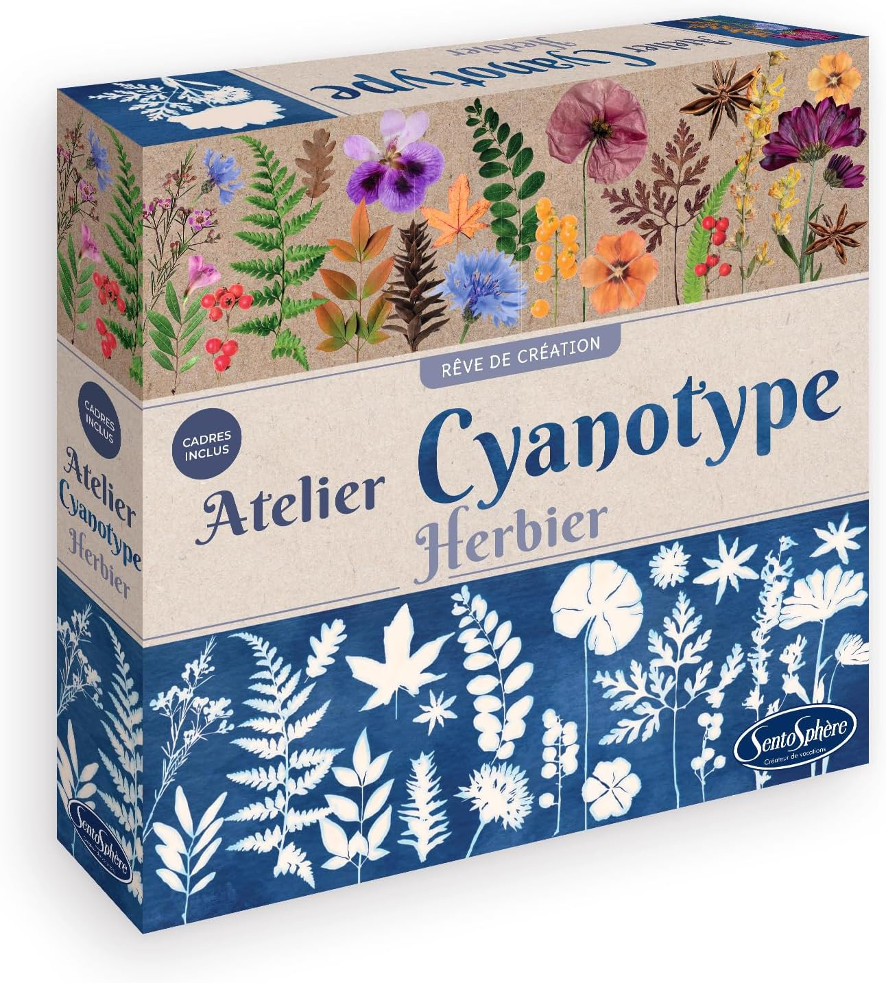 Plus produit Découvrez l'art du cyanotype avec notre atelier cyanotype herbier. ce procédé photographique captivant utilise un papier spécial enduit d'un mélange chimique qui réagit à la lumière, révélant des motifs bleus éclatants. créez de magnifiques compositions florales ou de feuilles en utilisant l'adhésif fourni pour coller vos créations sur le papier avant de l'exposer à la lumière. laissez libre cours à votre imagination et apportez une touche naturelle à votre intérieur.