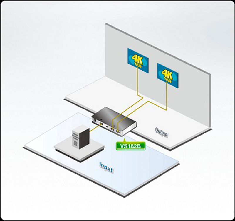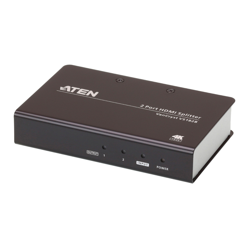 Splitter HDMI 2 sorties 4K 60Hz HDR ATEN VS182BVous souhaitez partager une source vidéo HDMI 4K entre deux écrans HDMI ?Le splitter HDMI 2 sorties 4K 60Hz HDR est la solution idéale pour toutes les personnes souhaitant afficher l'image d'une source de signal HD sur 2 écrans en même temps.Points forts du Splitter HDMI 2 sorties 4K 60Hz HDR ATEN VS182B :- Connecte une source HDMI à deux écrans HDMI en même temps.- Compatible HDCP 2.2- Qualité d'image remarquable, quatre fois supérieure à la résolution haute définition 1080p- Prend en charge tous les équipements compatibles HDMI tels que les lecteurs de DVD, les décodeurs satellites et tous les périphériques d'affichage HDMI.- Portée longue distance : jusqu'à 15m (1920 x 1200) / 1,8 m (True 4K)- Splitter HDMI 4k VS182 ATEN est rétrocompatible avec les anciennes révisions de la norme HDMISpécifications du Splitter HDMI ATEN VS182B :- Prend en charge résolution jusqu'à 4096 x 2160/3840 x 2160 à 60 Hz (4: 4: 4)- Prend en charge la HD- Max. fréquence d'horloge des pixels jusqu'à 600 MHz- Max. débit de données jusqu'à 18 Gbit / s (6 Gbit / s par voie)- Indication LED de l'état de l'alimentation et des appareils source- EDID Expert- Sélectionne les paramètres EDID optimaux pour une mise sous tension fluide, un affichage de haute qualité et l'utilisation de la meilleure résolution vidéo via le commutateur DIP EDID, permettant aux utilisateurs de basculer sans effort entre le port 1, par défaut et automatique- Plug-and-play - Aucune installation de logiciel requise- Compatible avec Aten 2L-7D02HContenu de la boîte :- 1 x VS182B répartiteur HDMI 2 ports - 1 x Adaptateur secteur - 1 x Câble HDMI - 1 x Manuel d'utilisation