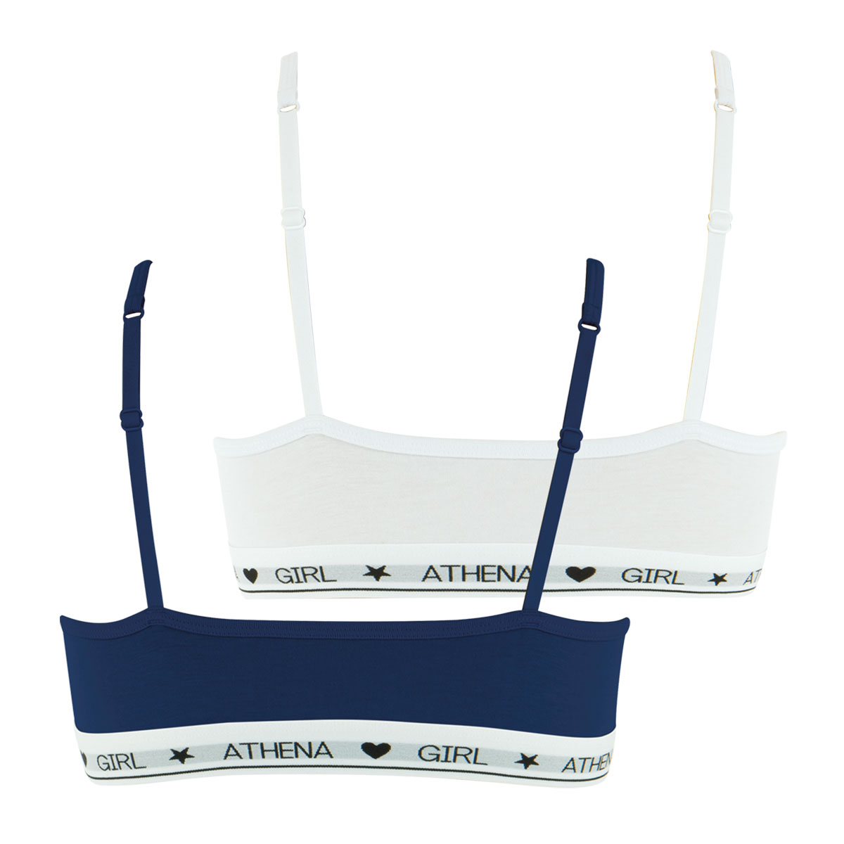 Caracté\;ristiques de ces 2 brassiè\;res fines bretelles ré\;glables blanche GIRL by Athena