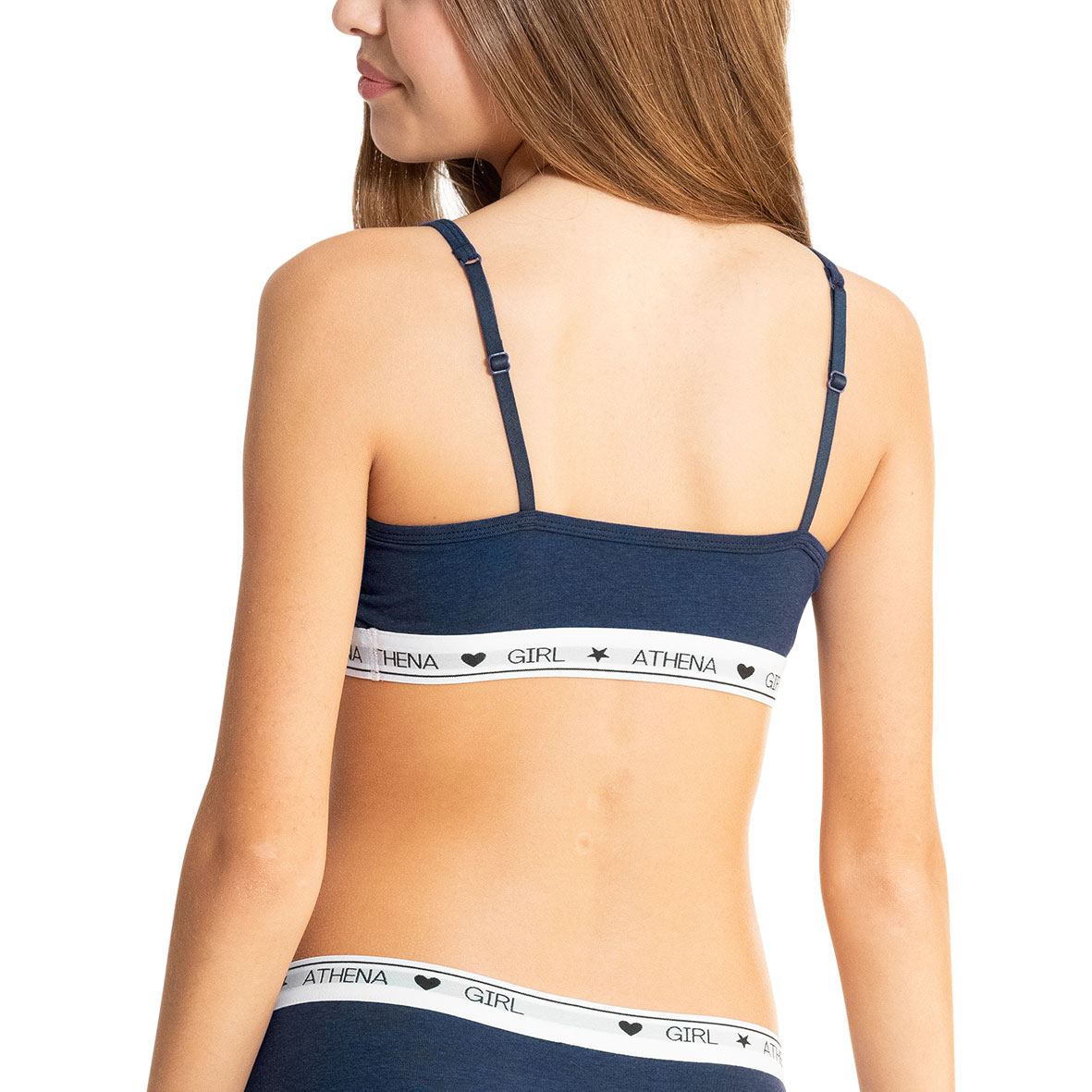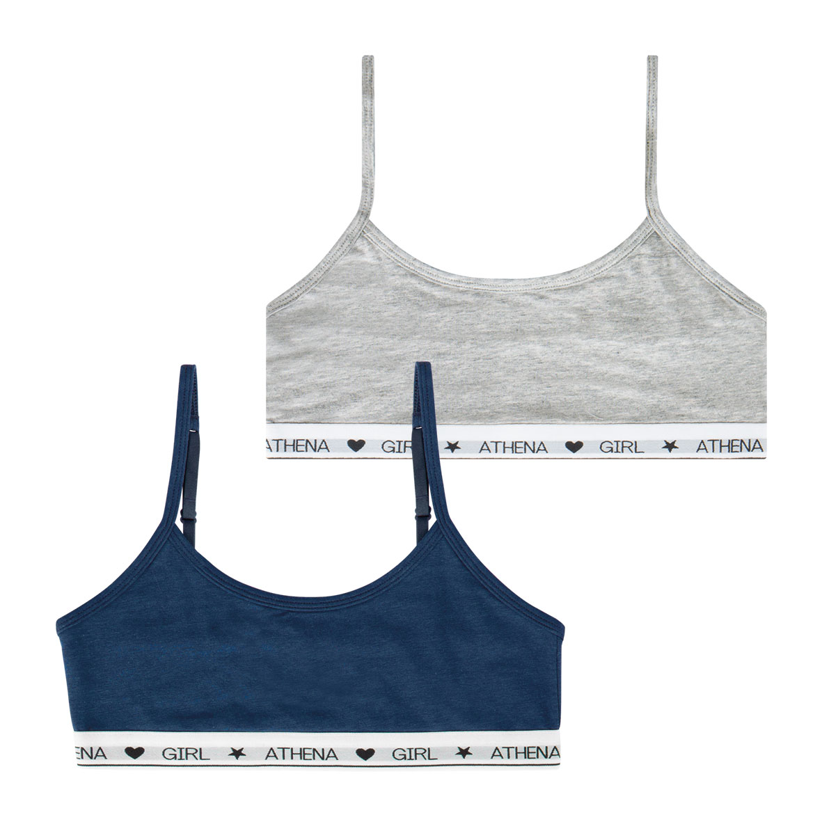 Caractéristiques de ces 2 brassières fines bretelles réglables bleu titane et gris chiné ATHENA Fille