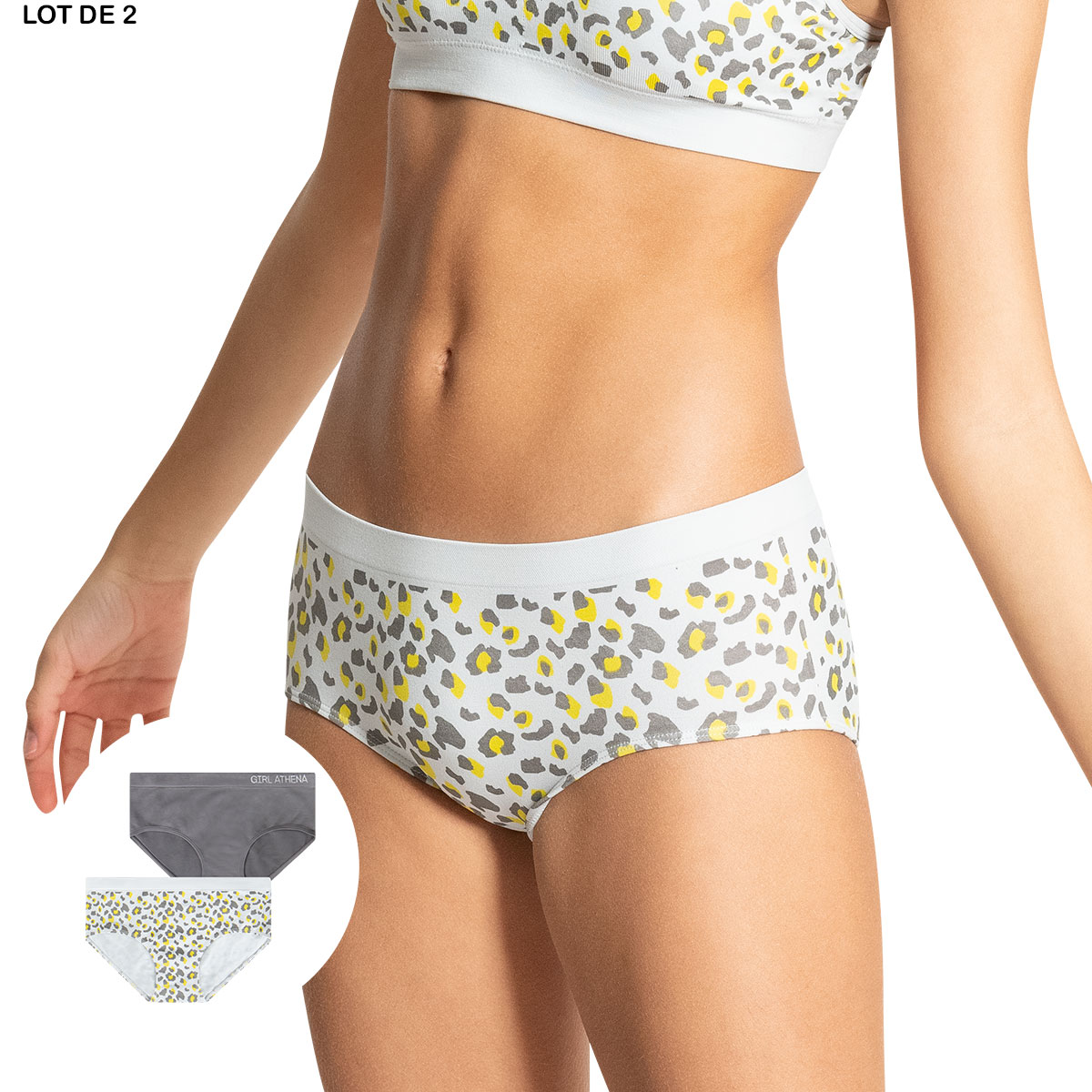 Caractéristiques de ce lot de 2 culottes hipster imprimé fashion léopard ATHENA Fille