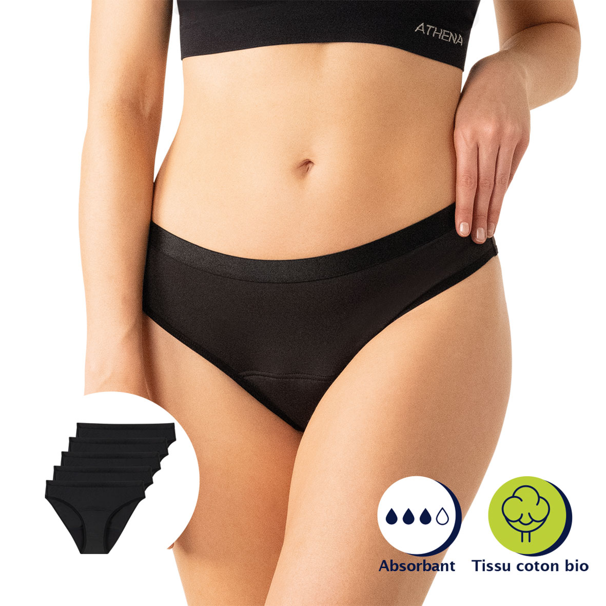 | Libellé | ATHENA Lot de 5 culottes menstruelles taille haute femme Athena |