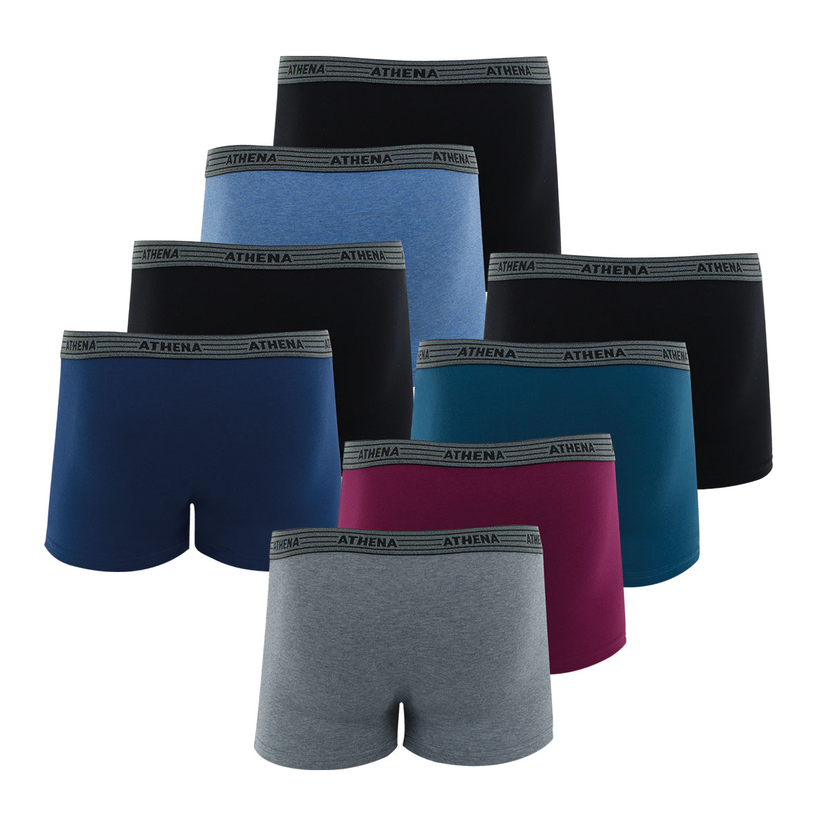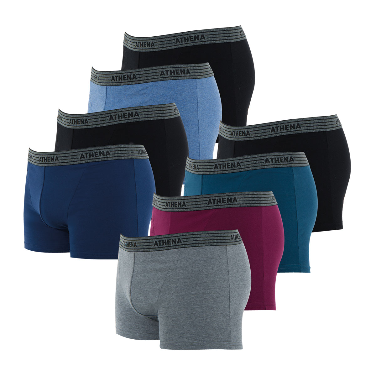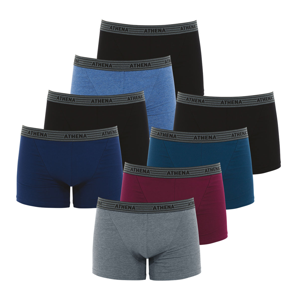 - Lot de 8 boxers ATHENA ECO PRIX \;vendus en boî\;te : \; 2 Bleux-3 Noirs- 1 Chiné\;- 1 Prune- 1 Pé\;trole \; \; \;