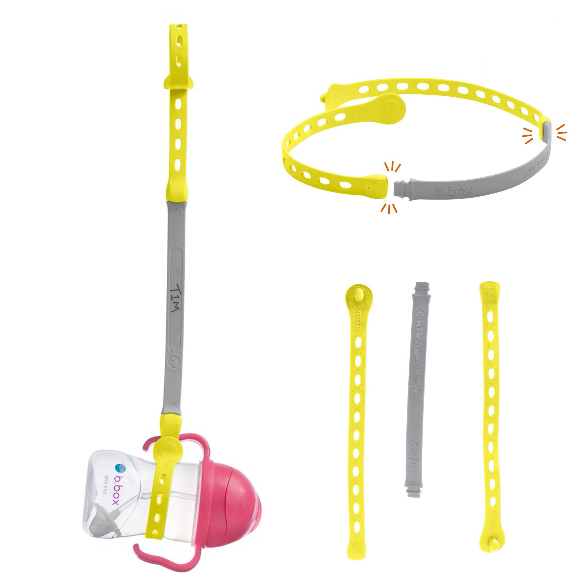 L'attache bébé anti-chutes d'objets a été inventée par une maman Australienne, à l'origine de la marque B.box. Grâce à cette attache bébé flexible en silicone, fini les objets qui tombent sans cesse.