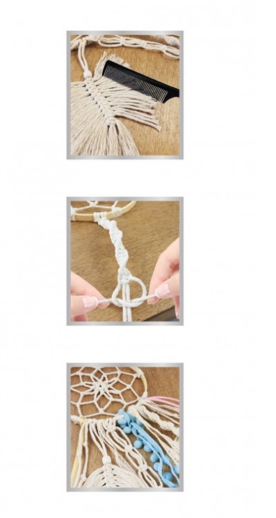 Tisse un attrape-rêves en utilisant la technique du macramé.
