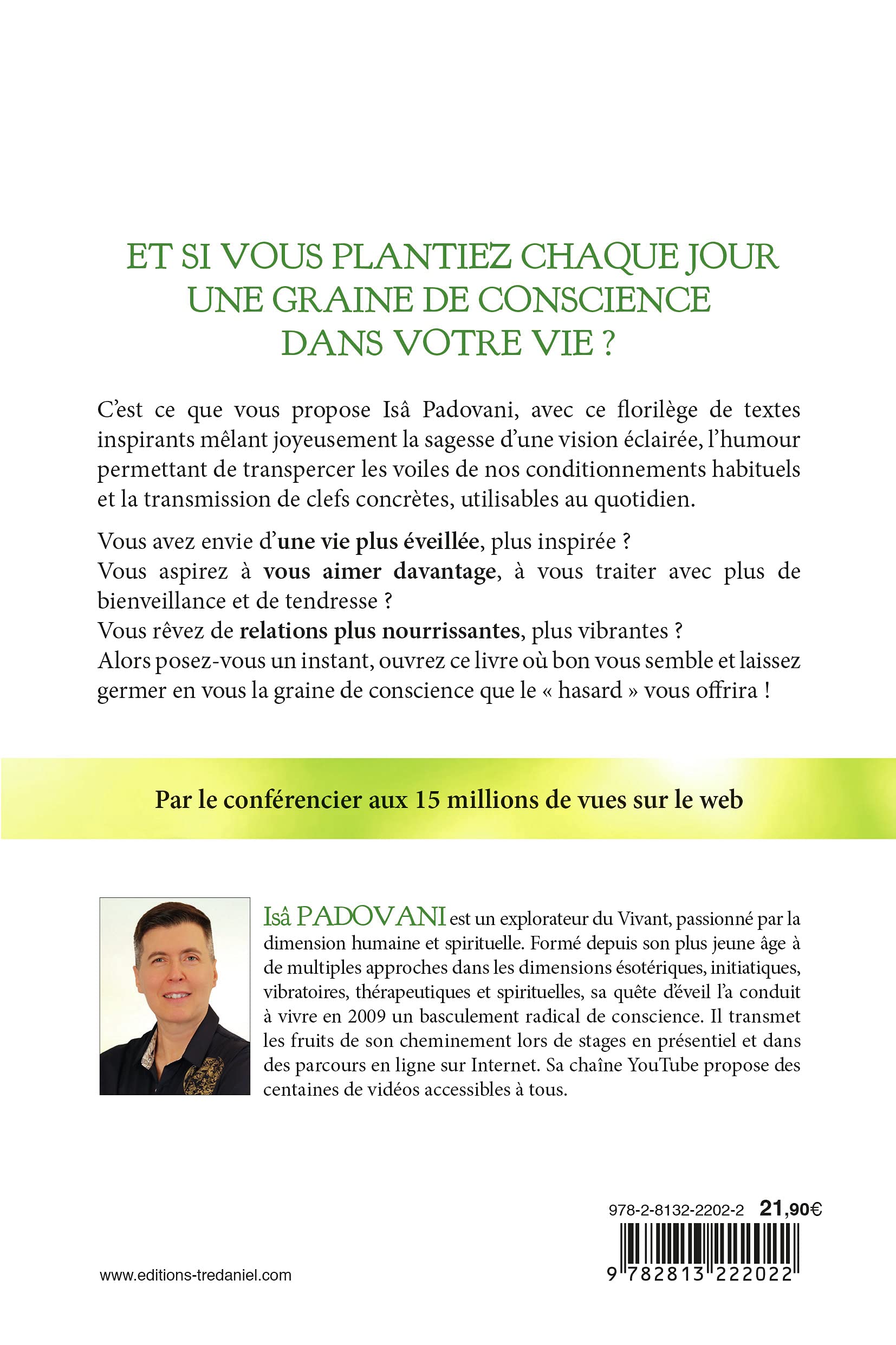 Alors posez-vous un instant, ouvrez ce livre où bon vous semble et laissez germer en vous la graine de conscience que le « hasard » vous offrira !