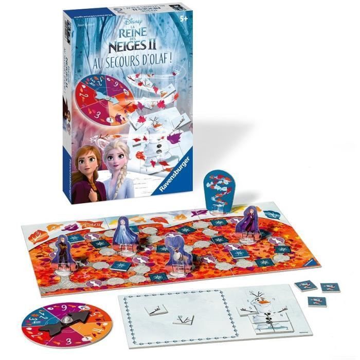 | Plus produit | Jouez tous ensemble contre le Vent pour aider Olaf à rassembler toutes les parties de son corps éparpillées dans la forêt. Aidez Olaf ! Le vent a éparpillé toutes les parties de son corps dans la forêt. Partez à leur recherche en compagnie d\'Elsa, Anna, Kristoff et Sven. Avec un peu de chance et une bonne mémoire, vous réussirez à le reconstituer ! Un jeu de parcours et de mémoire simple et plein des rebondissements pour les fans de la Reine des Neiges 2 ! Dès 5 ans. De 2 à 4 joueurs pour des parties d\'environ 20 minutes. Contenu : 1 plateau de jeu, 17 plaques Chemin, 12 cartes Personnage rondes, 4 pions, 1 règle du jeu |