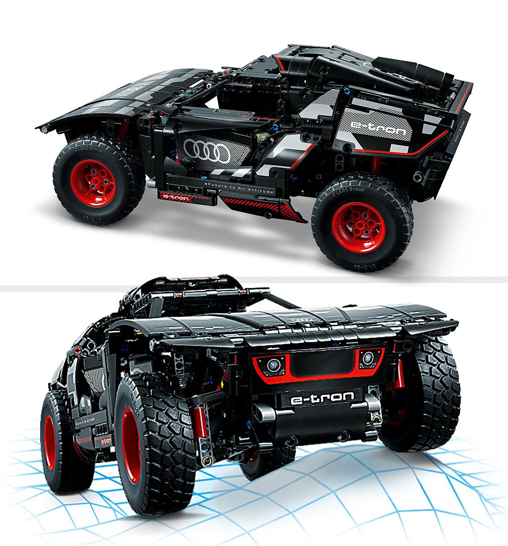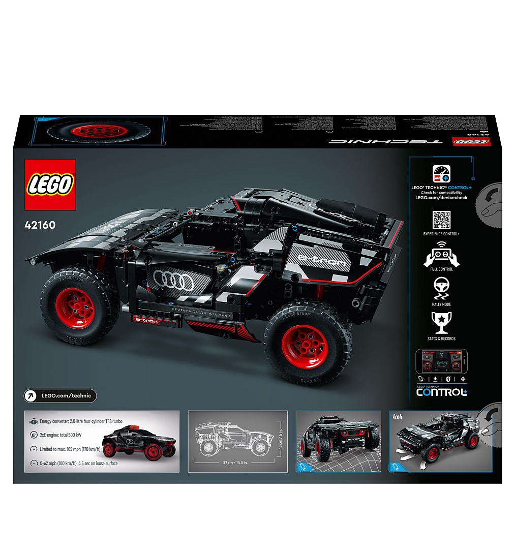 En construisant, ils explorent la voiture électrique originale, construite par Audi pour résister aux conditions exigeantes du Rallye Dakar. Ce modèle regorge de détails réalistes tels que les suspensions individuelles sur les 4 roues et inclut un nouvel élément de roue Technic créé spécialement pour refléter le design de l’Audi originale. L’application CONTROL+ permet de tester la voiture de rallye avec les commandes marche avant, marche arrière et direction.
