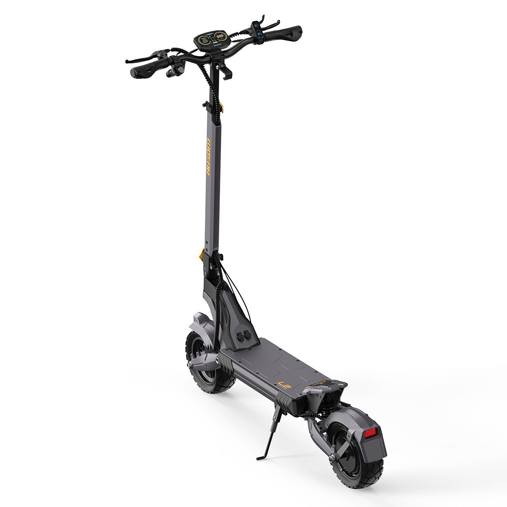 Vivez le frisson de l'aventure avec la trottinette électrique Ausom L2, dotée de bras oscillants avant et arrière robustes offrant une absorption des chocs exceptionnelle pour une conduite fluide, digne d'un SUV, sur tous les terrains. Ses impressionnants pneus tubeless sous vide de 10" x 3,0" adhèrent sans effort à divers terrains : que vous gravissiez des pentes raides, dévaliez des pentes ou rouliez sur des routes plates, vous bénéficiez d'une conduite stable et sûre qui rend chaque trajet agréable.
