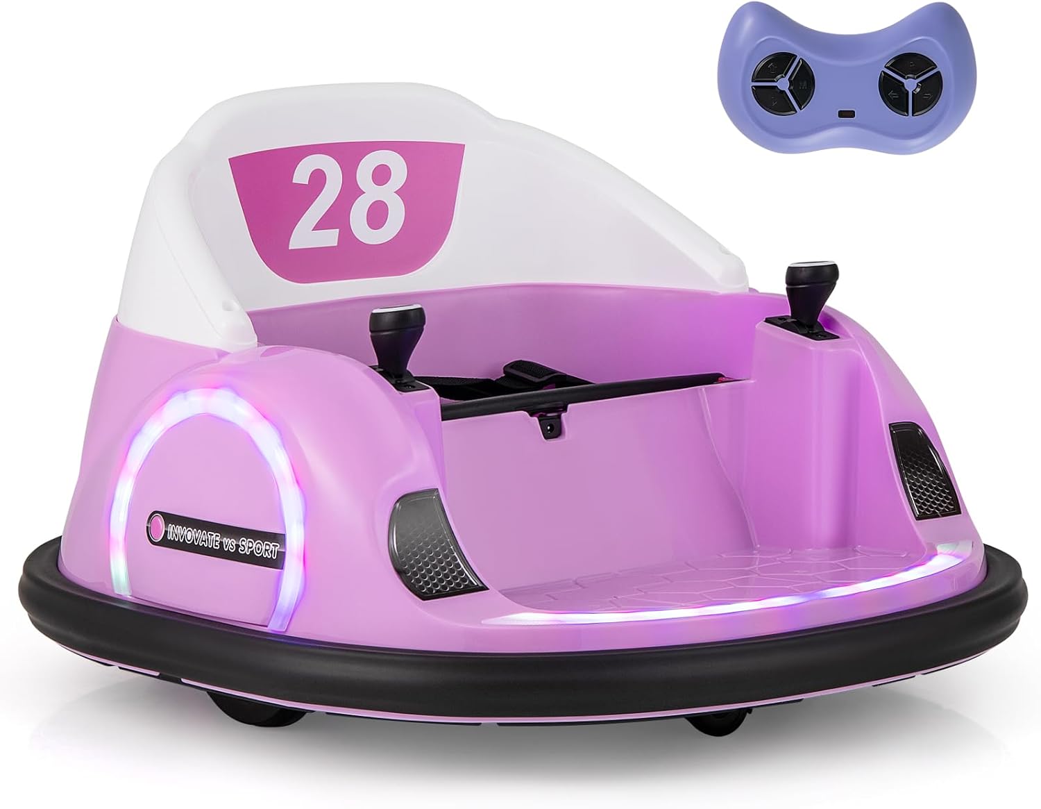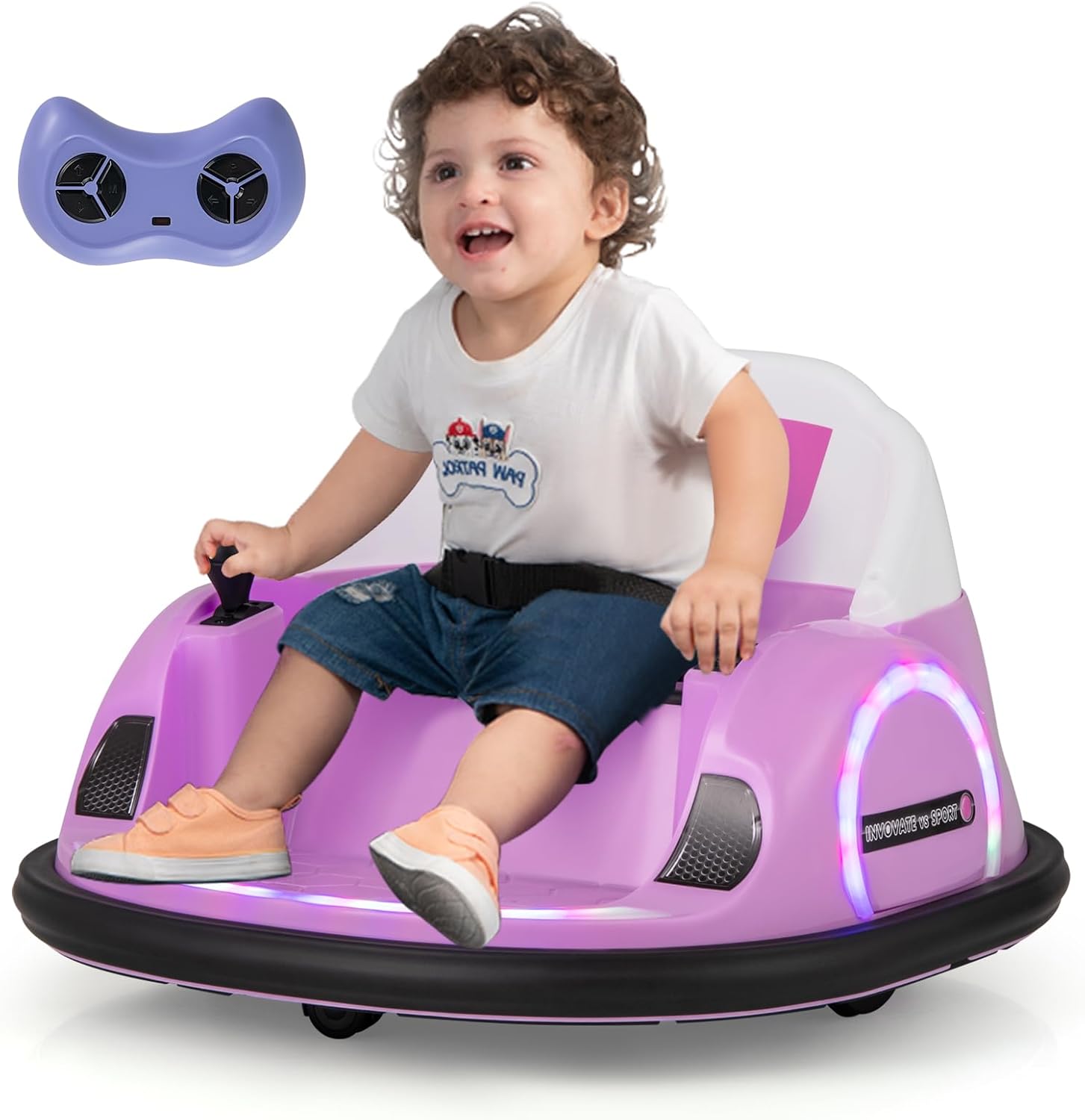 Auto-tamponneuse enfants avec led clignotantes, voiture electrique enfants avec télécommande rose